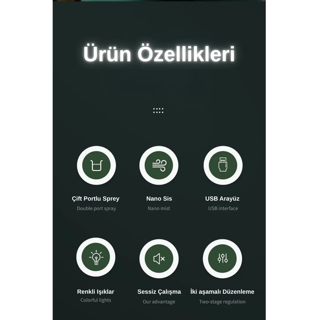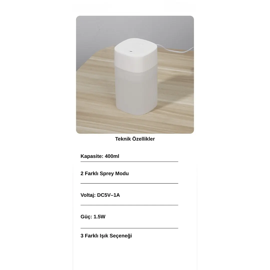 Hava Nemlendirici 400mL Taşınabilir Ultrasonik Hava Nemlendirici Aroma Difüzörü H2o TP-1034