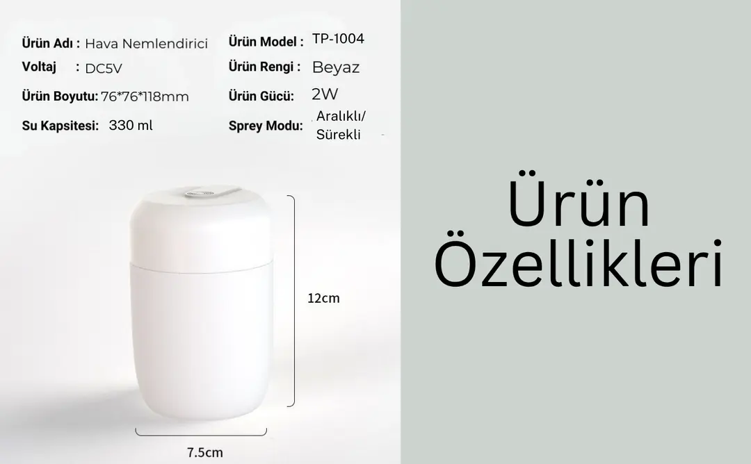 Hava Nemlendirici 400mL Taşınabilir Ultrasonik Hava Nemlendirici Aroma Difüzörü H2o TP-1034