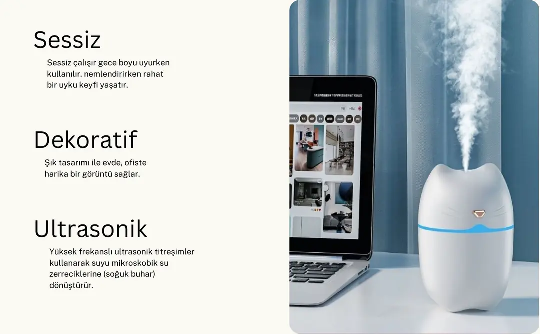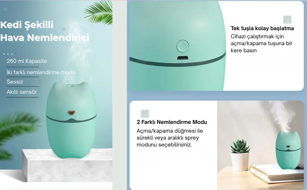 Kedi Şekilli Hava Nemlendirici USB Buhar Makinesi Aroma Difüzörü H2o Tp-1005