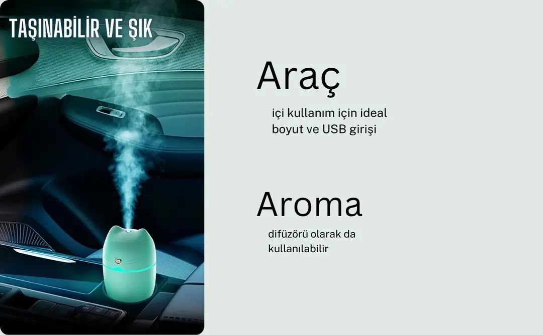 Hava Nemlendirici 400mL Taşınabilir Ultrasonik Hava Nemlendirici Aroma Difüzörü H2o TP-1034